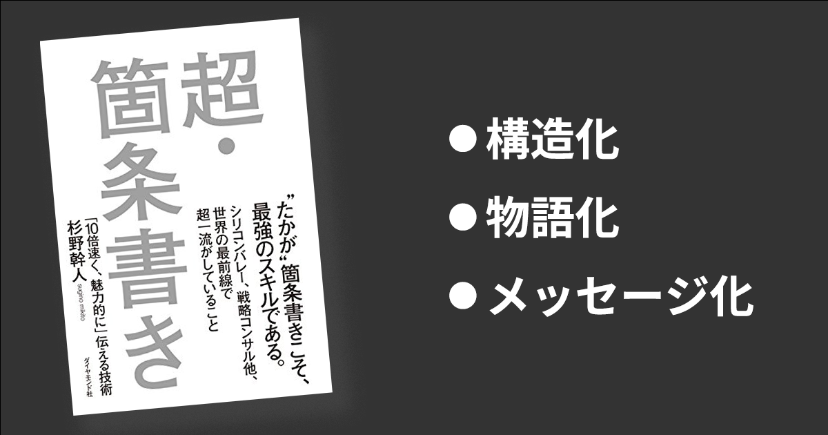| 本のタイトル | 超・箇条書き―――「10倍速く、魅力的に」伝える技術 |